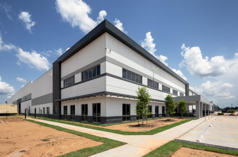 Conroe Logistics Center is a 30’ clear height load-bearing tilt-up concrete panel distribution building. This building includes office space, warehouse inbound / outbound offices, 4’x8’ skylights, Vertical Baler, HVLS Fans and …