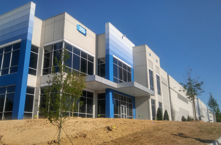 Lanier Logistics Center Buildings 1 and 2 a good example of a design duo that consists of two concrete tilt-up buildings utilizing various colors and shapes with alternating depths thereby creating shadows to provide visual …