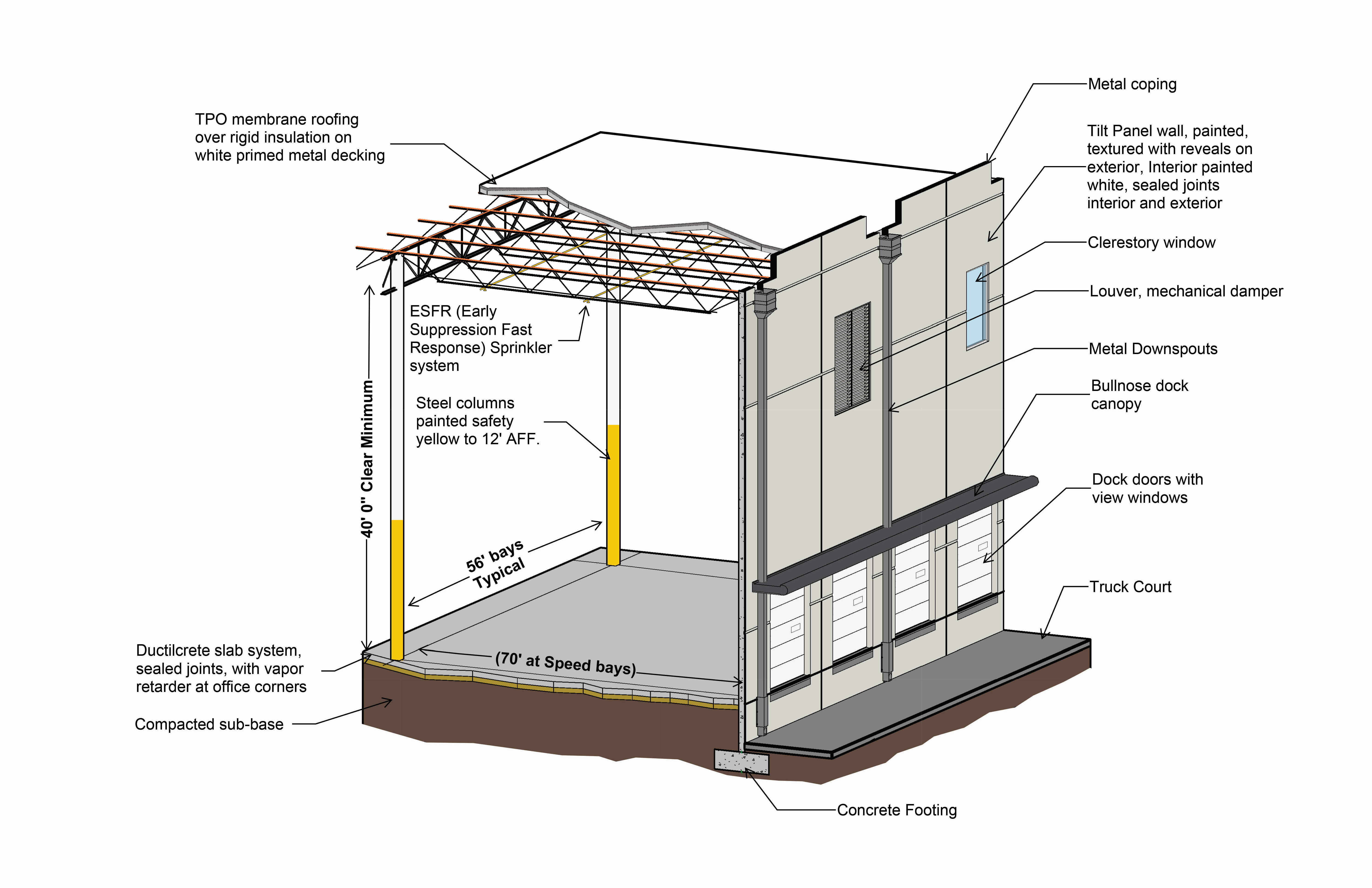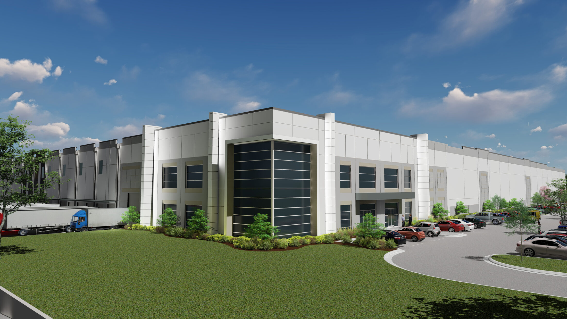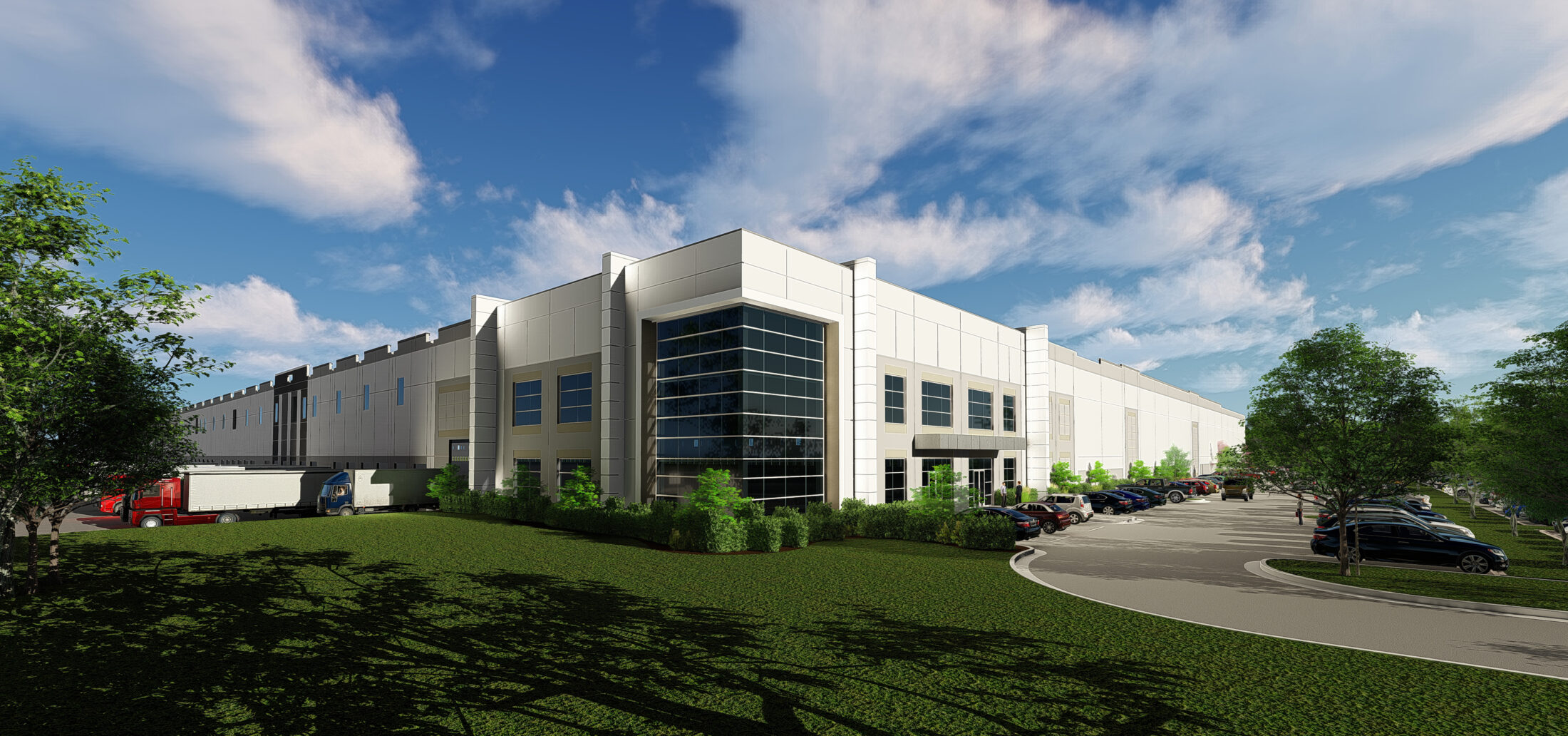 Lambert Farms is a 40’ clear height, load-bearing tilt-up concrete panel spec distribution building. The building’s has two office corner opportunities, accentuated by composite metal panels and two-story curtainwall.