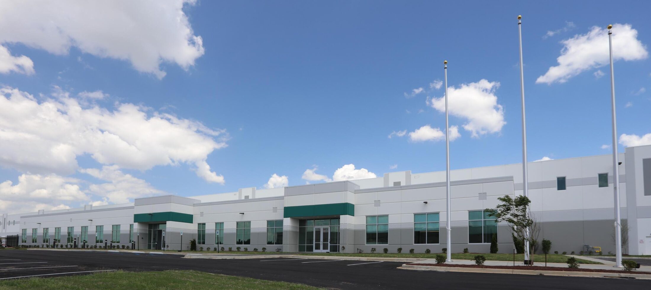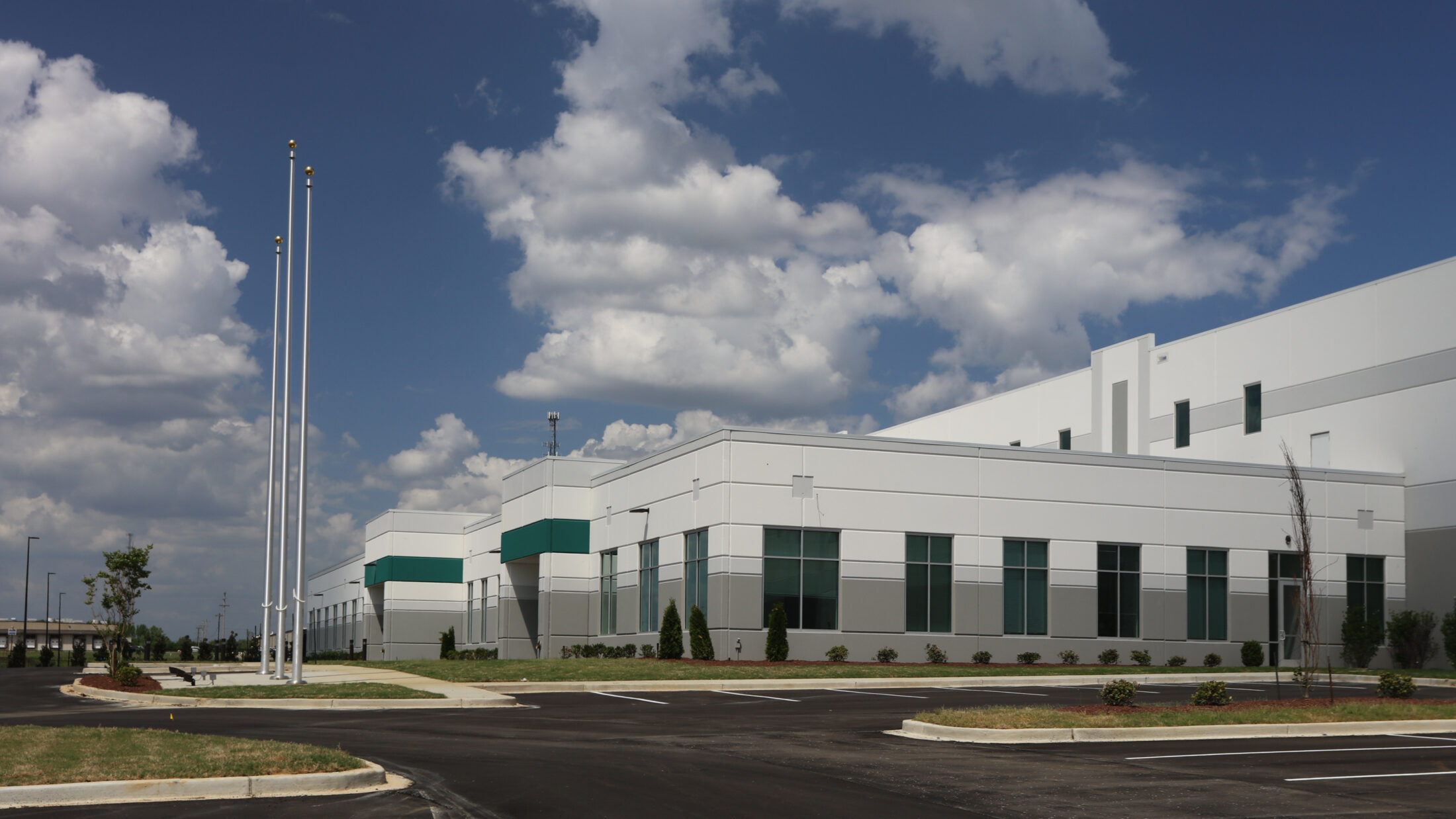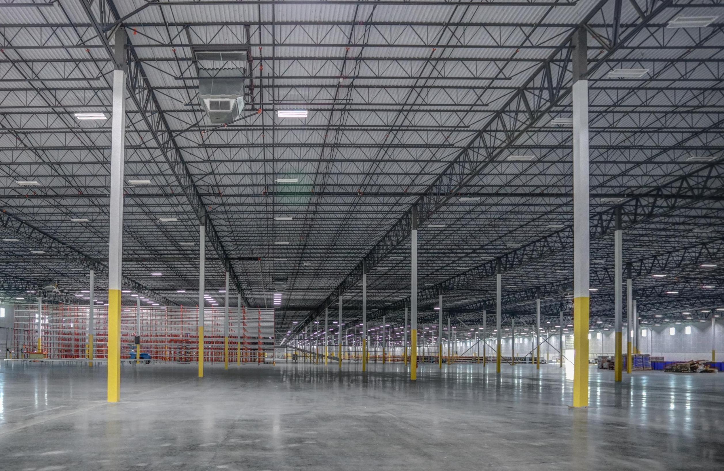 This cross-dock warehouse features 36’ clear between speed bays. It has 60 vertical lift dock doors equipped with levelers, lights and seals. It is constructed of load-bearing concrete tilt-up walls. Steel joist and joist girders support the metal deck, rigid insulation board and single-ply roof membrane. It is “tempered” — heated and cooled, and is fully sprinklered with an ESFR sprinkler system.