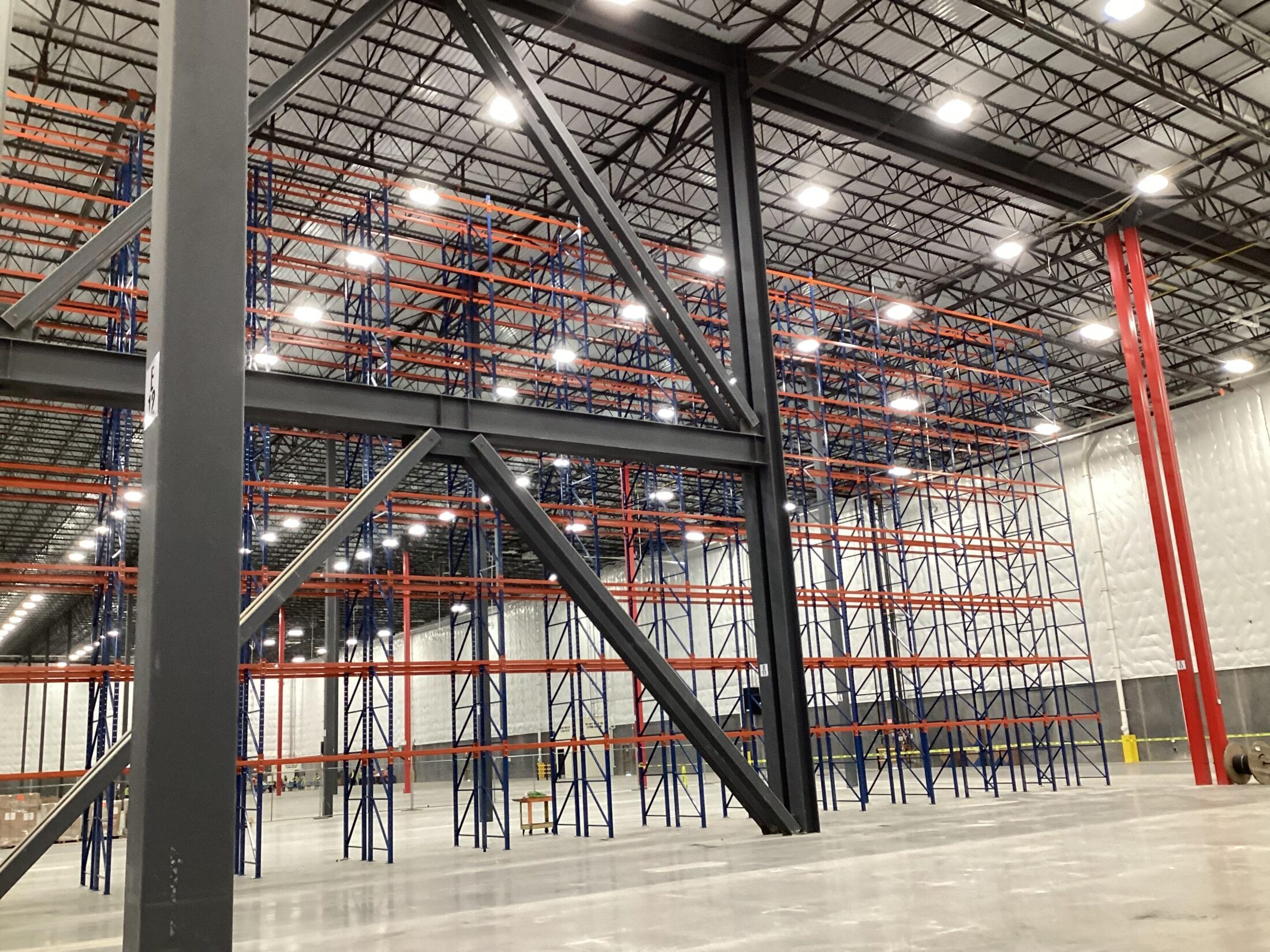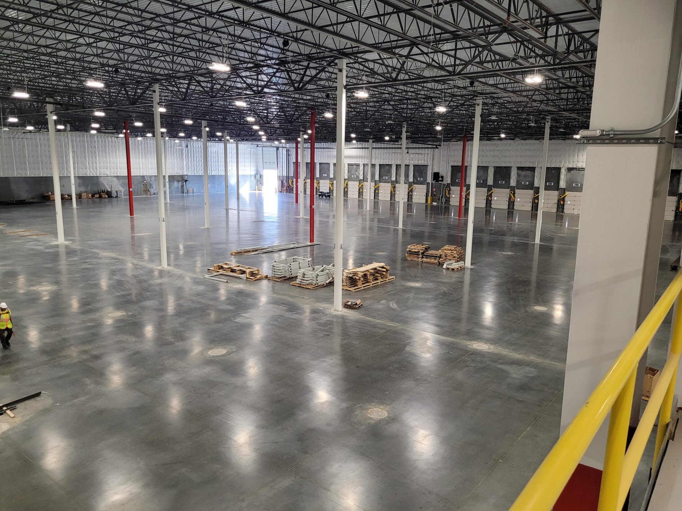 Project Tollway for TJX is a cross-dock distribution facility which includes high bay and low bay storage areas, material handling equipment, mezzanine, and office areas. There are some areas of F‑min defined traffic slab areas and random traffic areas, as well as an MFL wall.