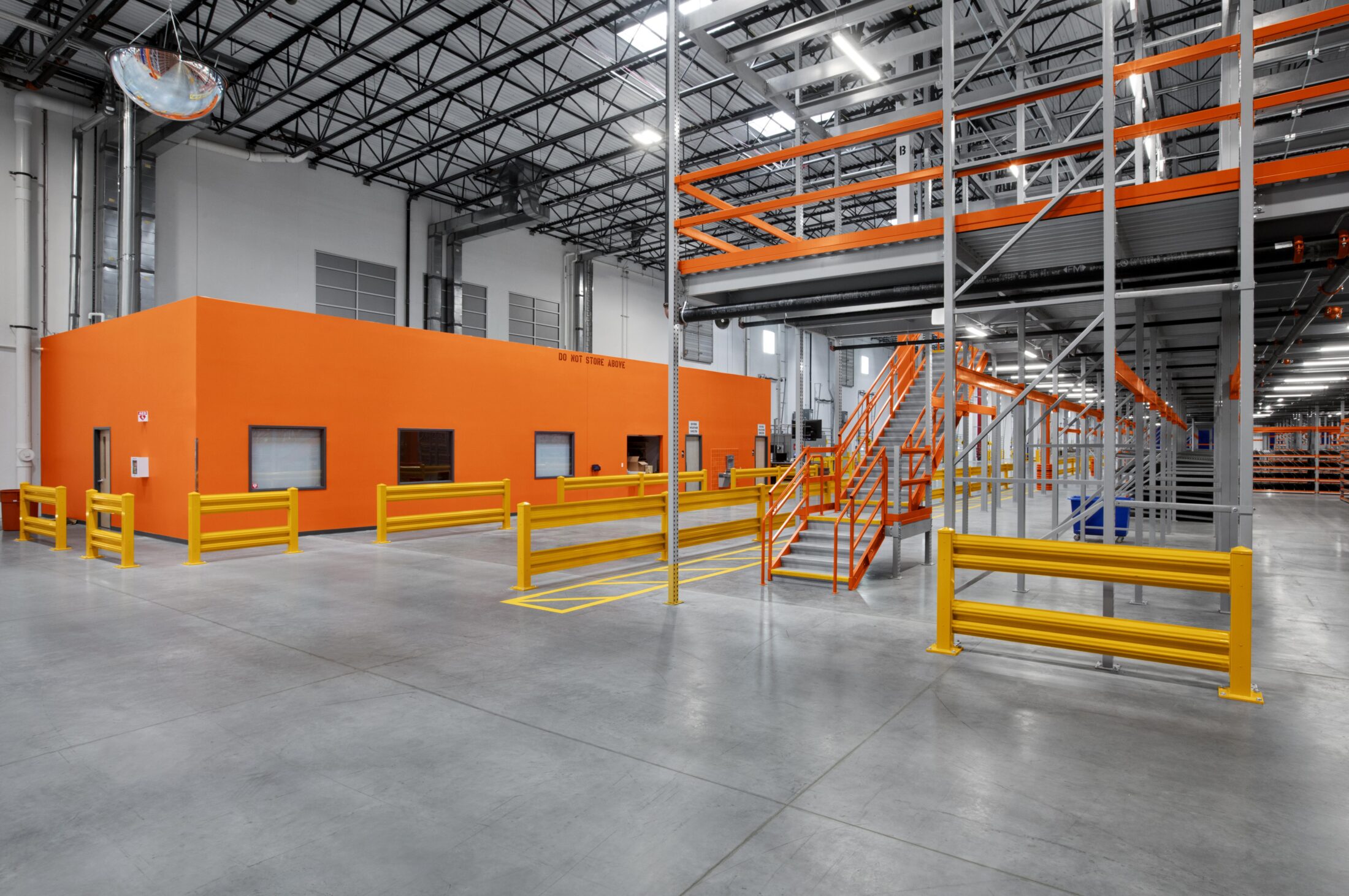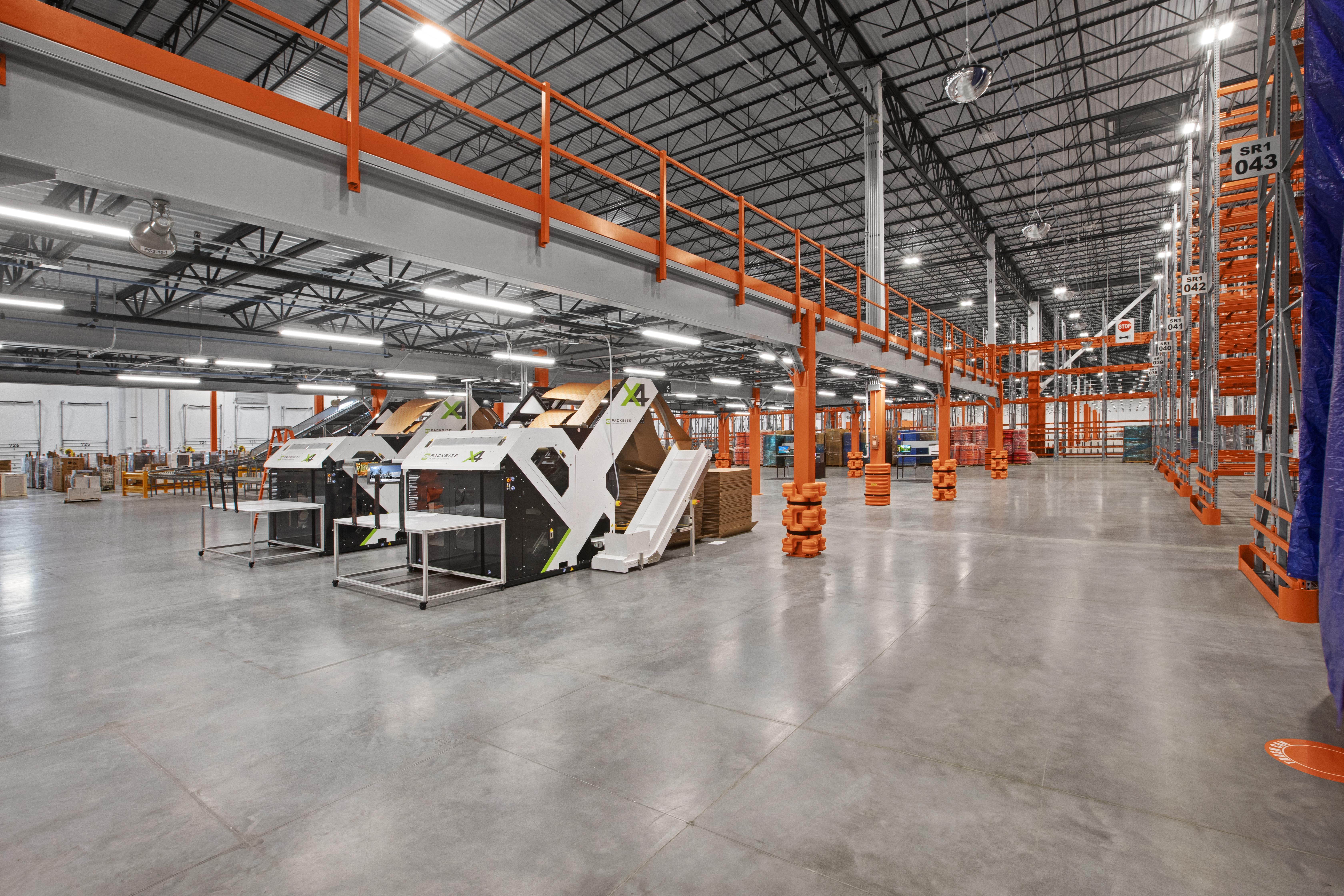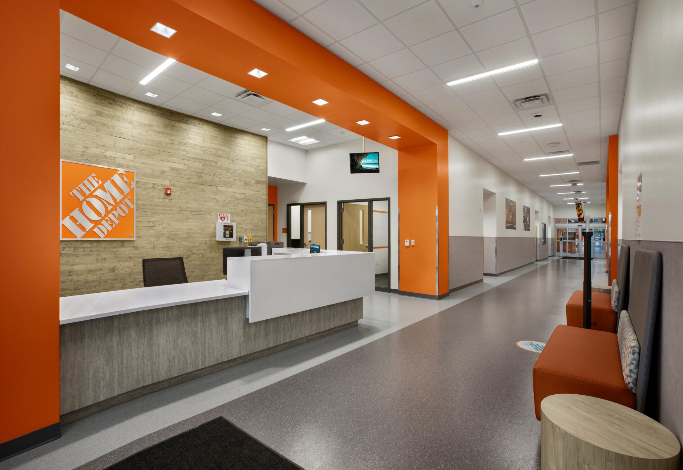 The Home Depot FDC and MDC The Home Depot distribution facility is located in Perth-Amboy, New Jersey. They are both load-bearing pre-cast panel build-to-suit warehouse projects with a clear height of 32’ and 34’ respectively. The buildings include skylights, elevated packing mezzanines, sorter platforms, conveyors, 10’ — 24’ HVLS Fans throughout, Pallet Racking and Pick Modules just to name a few.